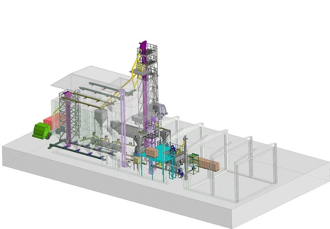Лінія приготування комбікормів ЛПК-5.8 в поширеному приміщенні ОКЦ-50