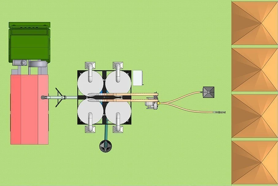 Установка для приготування комбікормів продуктивністю до 2 т/год з автоматичним вузлом дозування компонентів та вивантаженням готової продукції, розроблена на базі перевіреного часом горизонтального протитечійного змішувача МКУ-3 із доведеною однорідністю змішування 95-97% (залежно від рецепту).